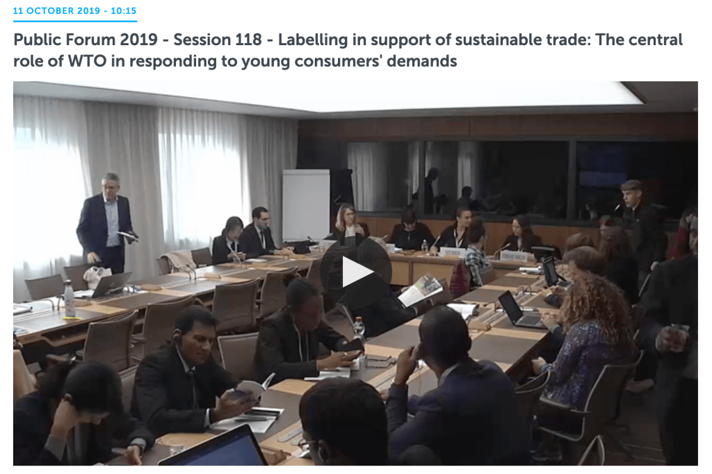 Octobre 2019 – Participation au Forum Public de l’Organisation Mondiale du Commerce