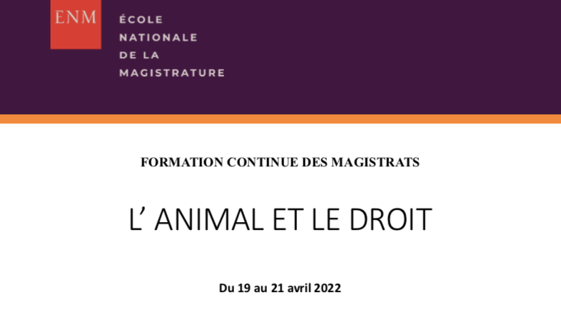 Le 20 avril 2022, Aude-Solveig Epstein est intervenue à une journée de formation continue des magistrats sur le thème du droit de l’animal. InfoTrack remercie chaleureusement Me Marie-Bénédicte Desvallon pour son invitation à participer à cette journée de formation.
