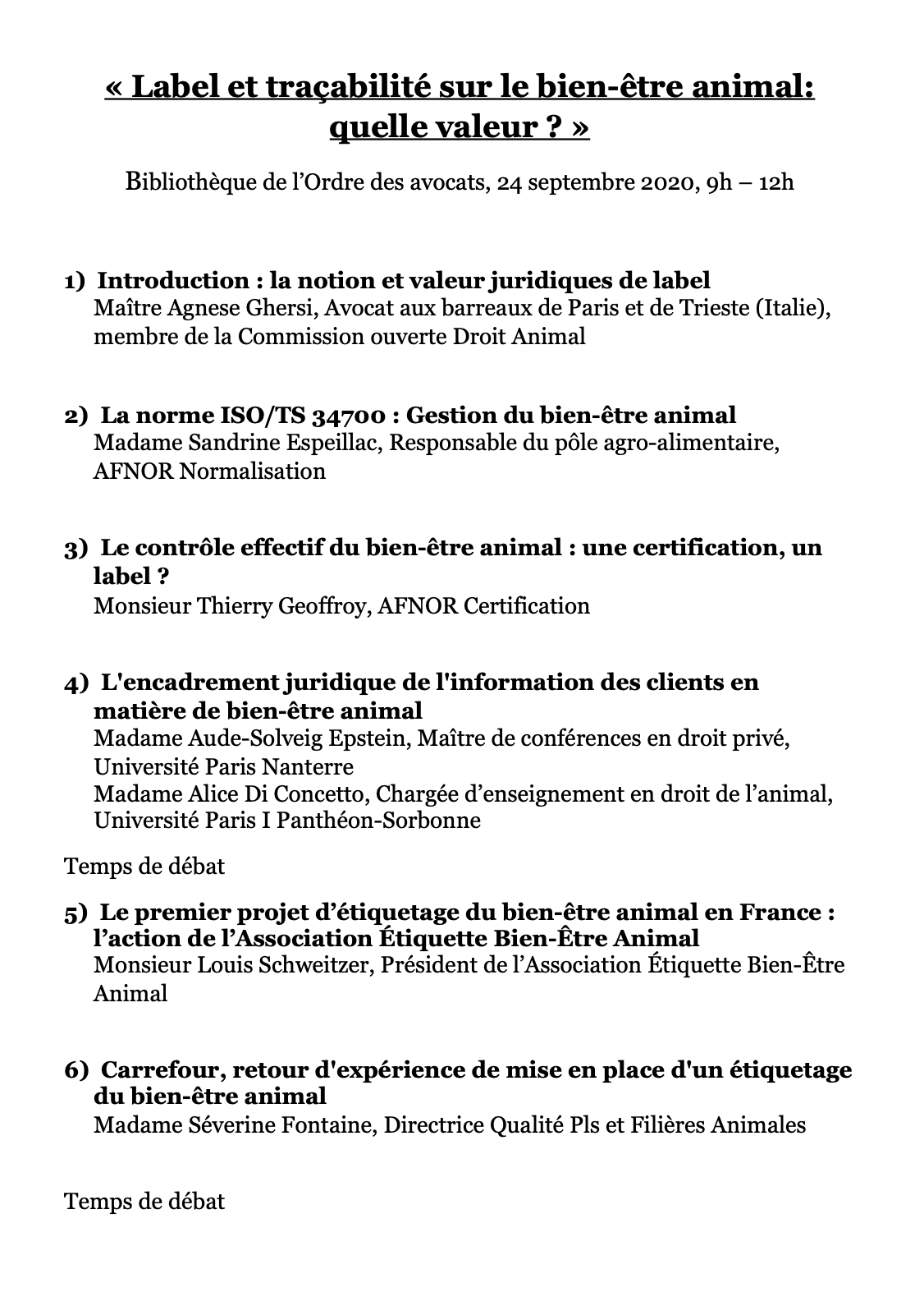 Un résumé de l’évènement disponible dans la revue trimestrielle de la Fondation Droit Animal Ethique et Sciences | Les diapositives de l’évènement sont téléchargeables ici | Programme complet (cliquez pour agrandir):